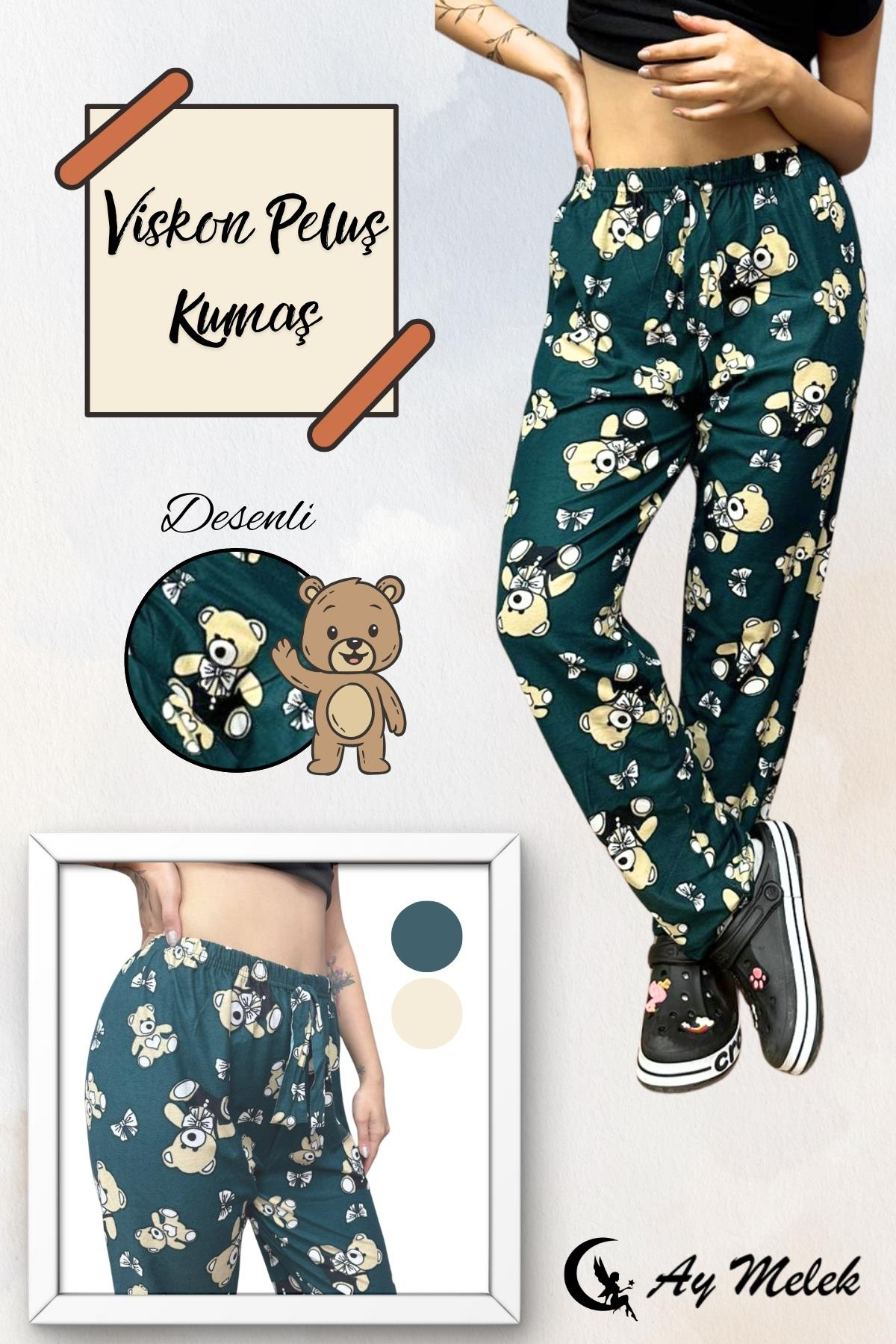 Kadın Pijama Soft Pamuklu İnce Nefes Alan Peluş Tek Alt Pijama