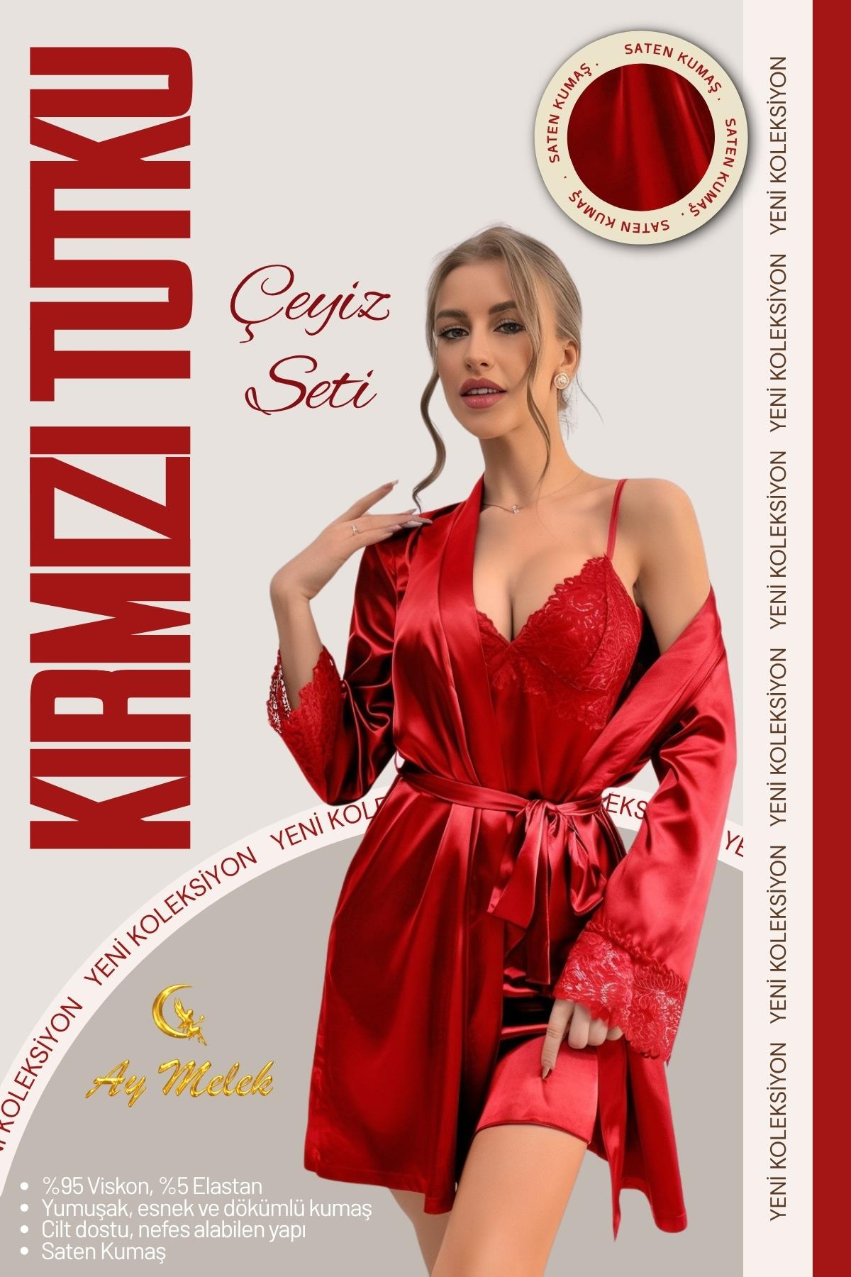 Kırmızı Tutku 10’lu Çeyiz Seti; sabahlıktan geceliğe, pijama takımından fantezi iç giyime ve kozmetik ürünlerine kadar ihtiyacınız olan her detayı bir araya getiriyor. Hepsi uyumlu, hepsi zarif ve hepsi içinizi ısıtacak güzellikte.