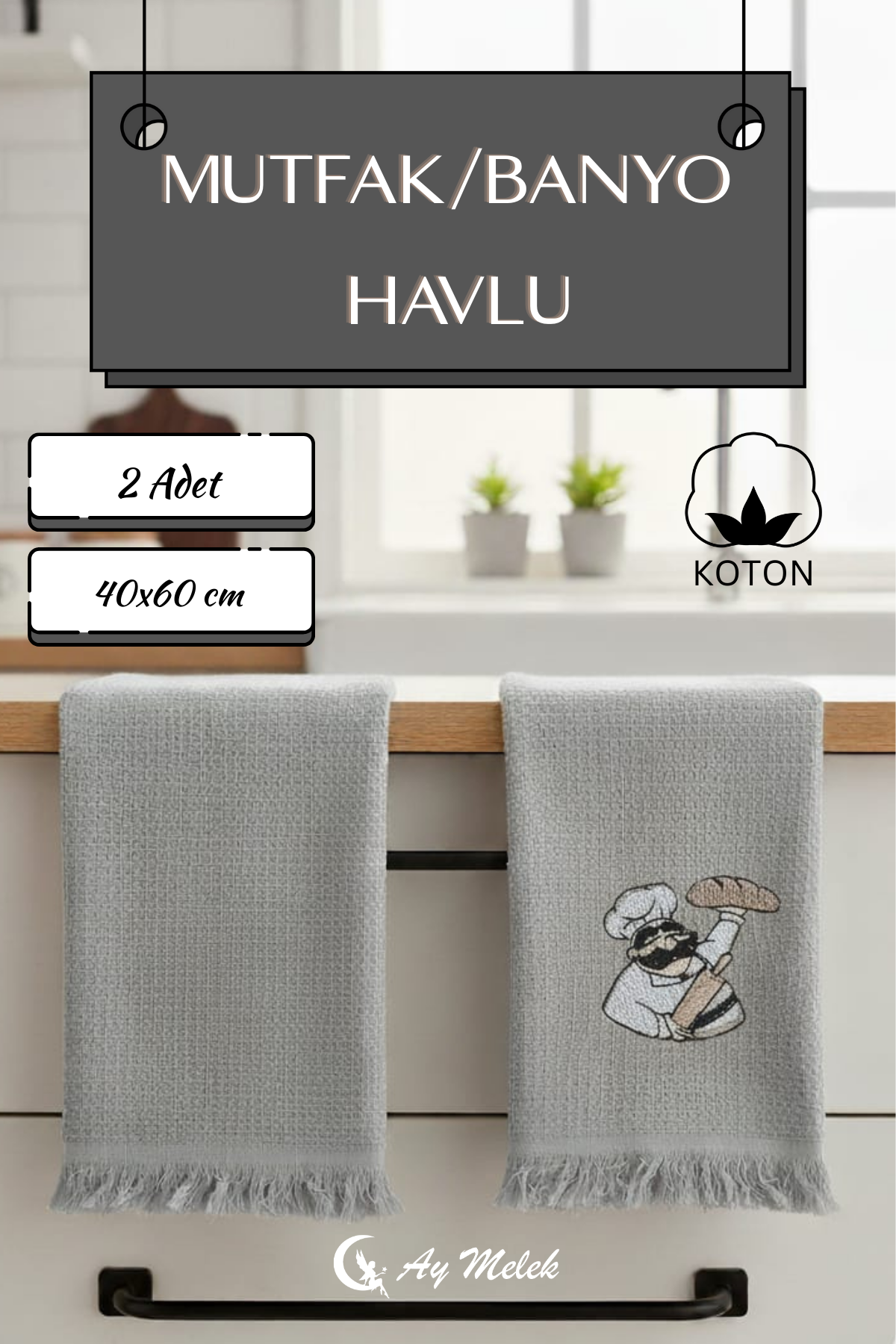 Mutfak ve Banyo Havlusu 2`li %100 Pamuklu Nakışlı El Havlusu